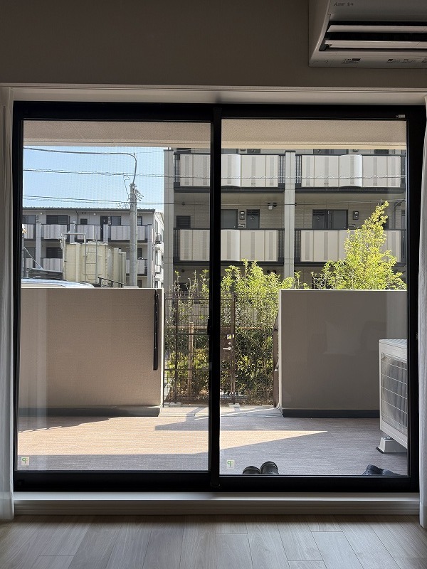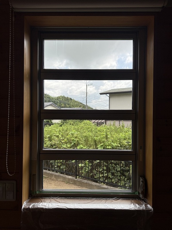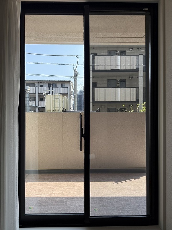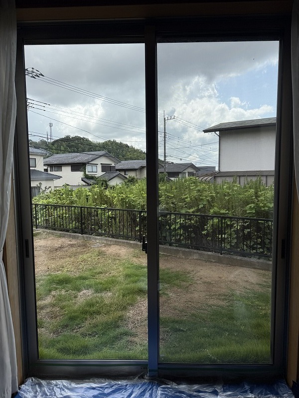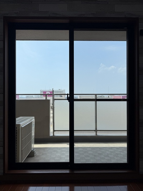外貼り施工の理由 | 室内側に防犯フィルム施工のため |